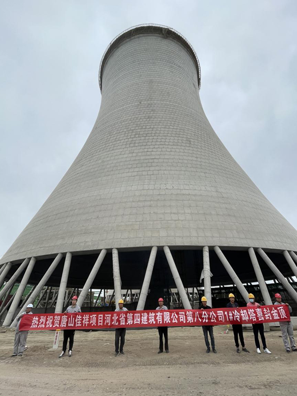 八分公司承建唐山佳祥焦电项目1#冷却塔喜封金顶